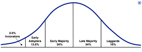 The most important thing that the Rider can do is provide crystal clear direction. Simon Sinek, author of Start with the Why** speaks about the law of diffusion of innovation (below), which shows how people respond to change. It makes me think where the term ‘Elephant’ came from. The role of the Innovator is to shift that great big hulking Early Majority and Late Majority, harnessing the support of the Early Adopters and ultimately dragging the Laggards along by their fingertips. Sinek states that the leader’s focus must be vision and the ability to communicate it and in so doing, provide crystal clear direction.