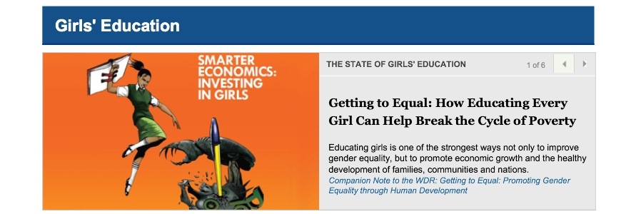 “When a girl in the developing world receives seven years of education, she marries four years later and has 2.2 fewer children. An extra year of secondary school increases her eventual wages by 25%.”