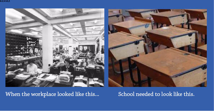 Educators are pioneers and navigate unchartered territory and have done throughout history. The industrial-era school was a response to what the community needed at the time. Moving away from the agriculturally based society to an urbanised industrial society, education provided skills and routine.