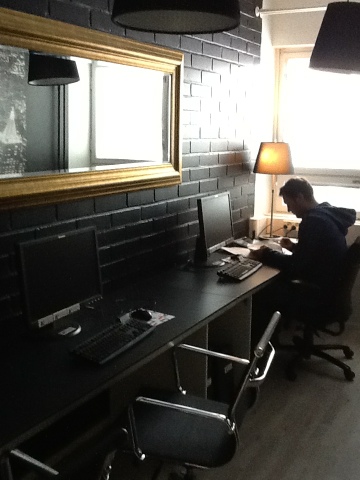 Project work varies and spaces need to be used for multiple purposes. They don’t have a formal reception, it looks like a bar and is probably often used as such. Nooks and semi- enclosed areas create places of people to work together. I talked with a couple of students in one of the workshop spaces – one engineering, the other business, who were collaborating on a project.