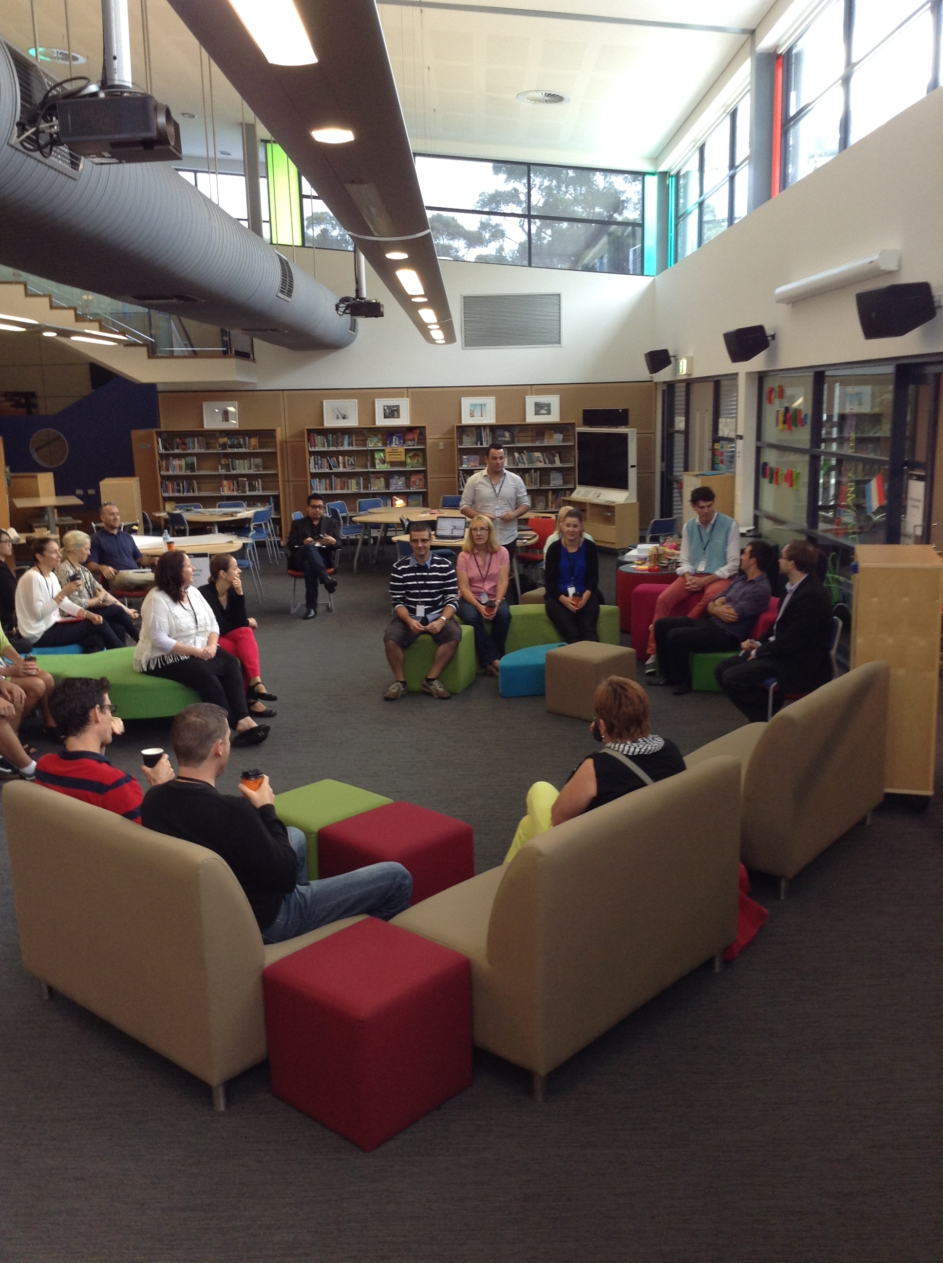 At Making it Mobile we present a professional learning experience that gives meaningful and helpful input as well as providing teams with the time and the space to play with the ideas and create something they can implement with their students in the following week. The  professional learning is presented in a physical learning environment that recreates the open spaces at NBCS. IMG_1214