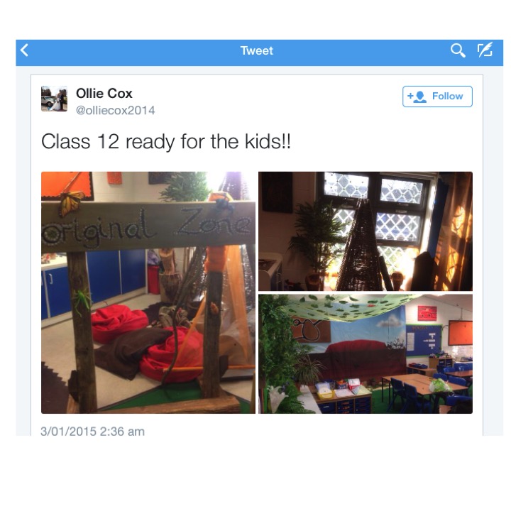 As I travel and see schools I often am impressed by professionally designed spaces that have substantial budgets, but what the crew at Hartsholme have done is taken their everyday classrooms and created immersive learning environment, reflecting the theme of the term. The classrooms don’t have one desk, one chair per student. The children are working on the floor, inside castles or tents, wherever they feel most productive.