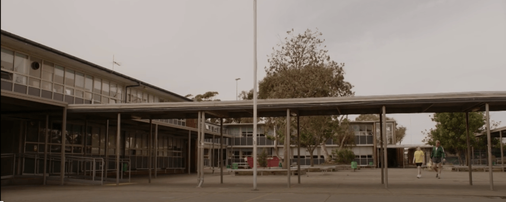 My high school experience created less positive memories. Recently watching a UK/Aus ‘dramedy’ Frayed, I was sure that I saw the playground at the high school from my youth – a desolate space, quadrangles dissected by covered walkways. Shade? This was not a consideration. As I recall, the grassed spaces were only domain of those who played football, you ventured there at your own risk (or during those semi-regular bomb scares of the 70s).