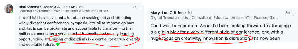 For some time I’ve been struggling with the passive-participant-conference as a predominant model and its return on investment. Real transformation unfolds when we deliberately disrupt the model and commit to change, otherwise we will default to the familiar experience.