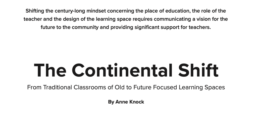 Future-Focused Learning/BFX Furniture: The Continental Shift: From Traditional Classrooms of Old to Future Focused Learning Spaces by Anne Knock (2018)